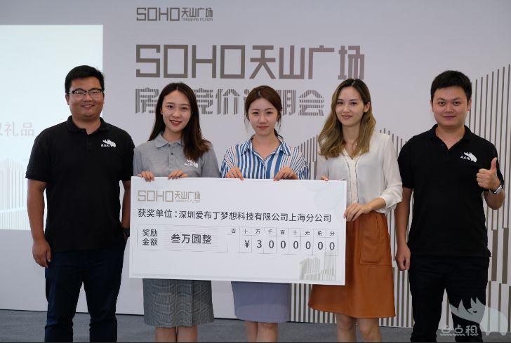 以在SOHO中国官方统计口径内的自持未售项目SOHO天山为例,知名全国性商业地产机构除点点租排名第一外,中原地产排名第四、DTZ排名第五、好租排名第六、JLL排名第九。其中第一名和最后一名的业绩差距近10倍。SOHO天山广场项目隶属上海长宁大区王浩组负责,长宁大区总监李志付、经理王浩等代表点点租参加颁奖活动,并领取了SOHO中国3万元销冠奖励。